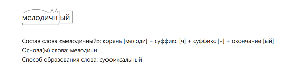 Мелодия - ИЯ окончание, МЕЛОД основа и корень