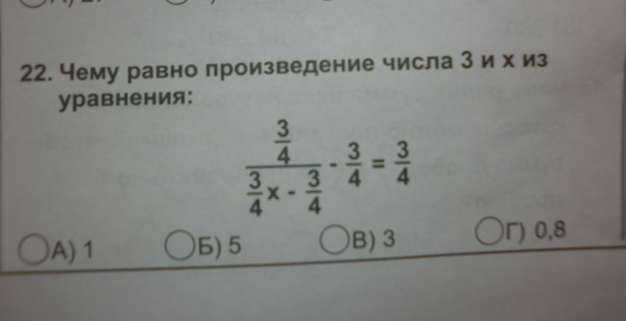 3/4+3/4=(3/4)/(3/4x-3/4). (3/4)/(3/4+3/4)=3/4x-3/4. (3/4)/(6/4)+3/4=3/4x. 3/6+3/4=3/4x. 15/12=3/4x. X=5/3. Следовательно x*3=5/3*3=5. Ответ :5
