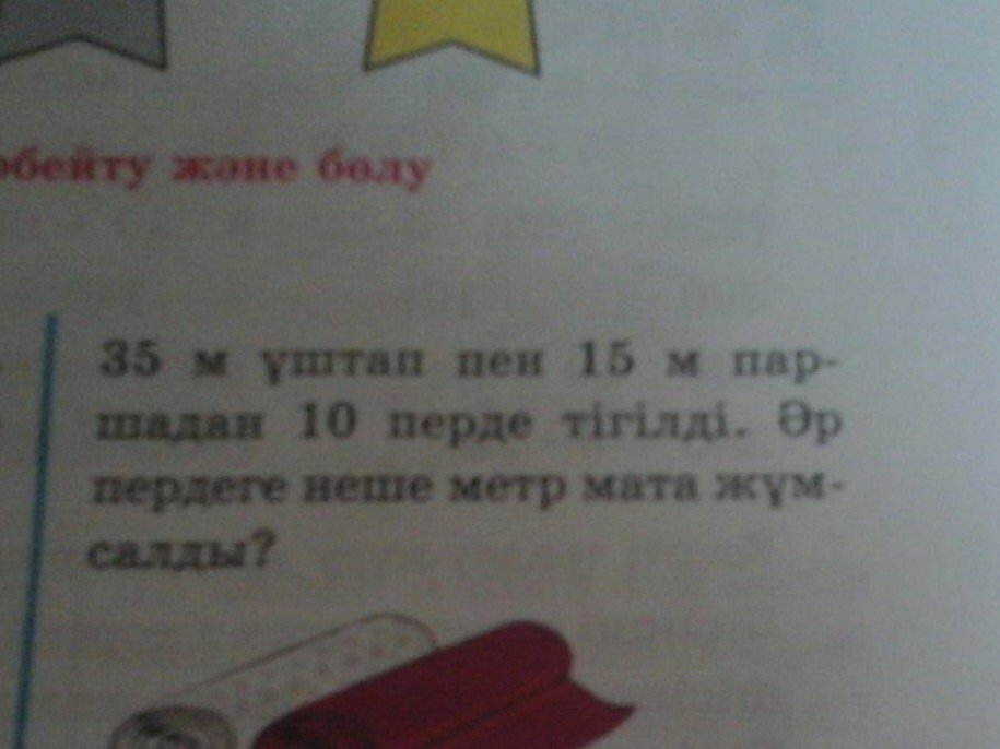 Жауабы:ар пердеге 3.5метр уштап жане 1.5метр парша жумсалды.