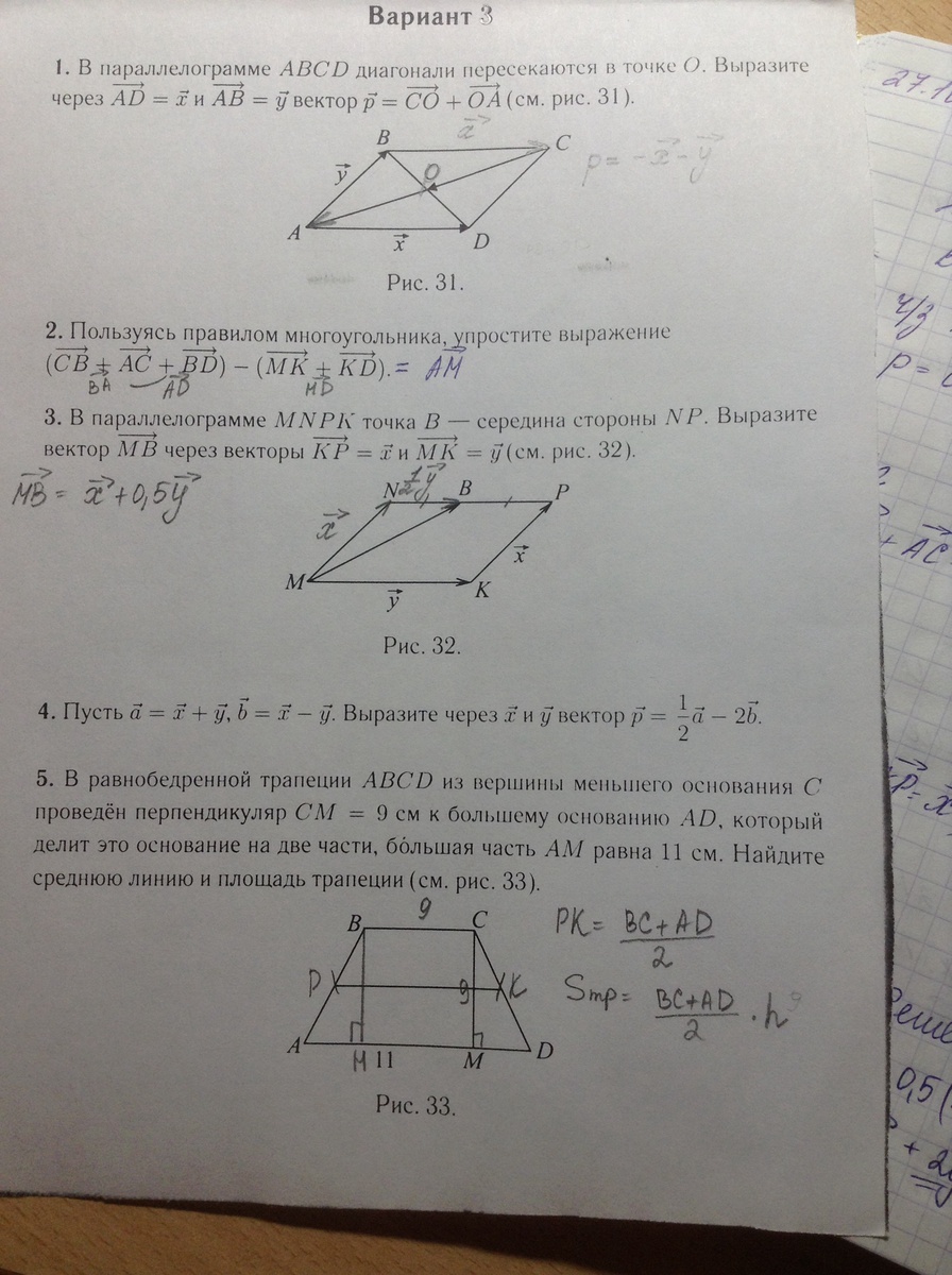 2.в параллелограмме MNPK точка B- середина стороны NP.Выразите векто MBчерез векторы KP=X и MK=y вектор