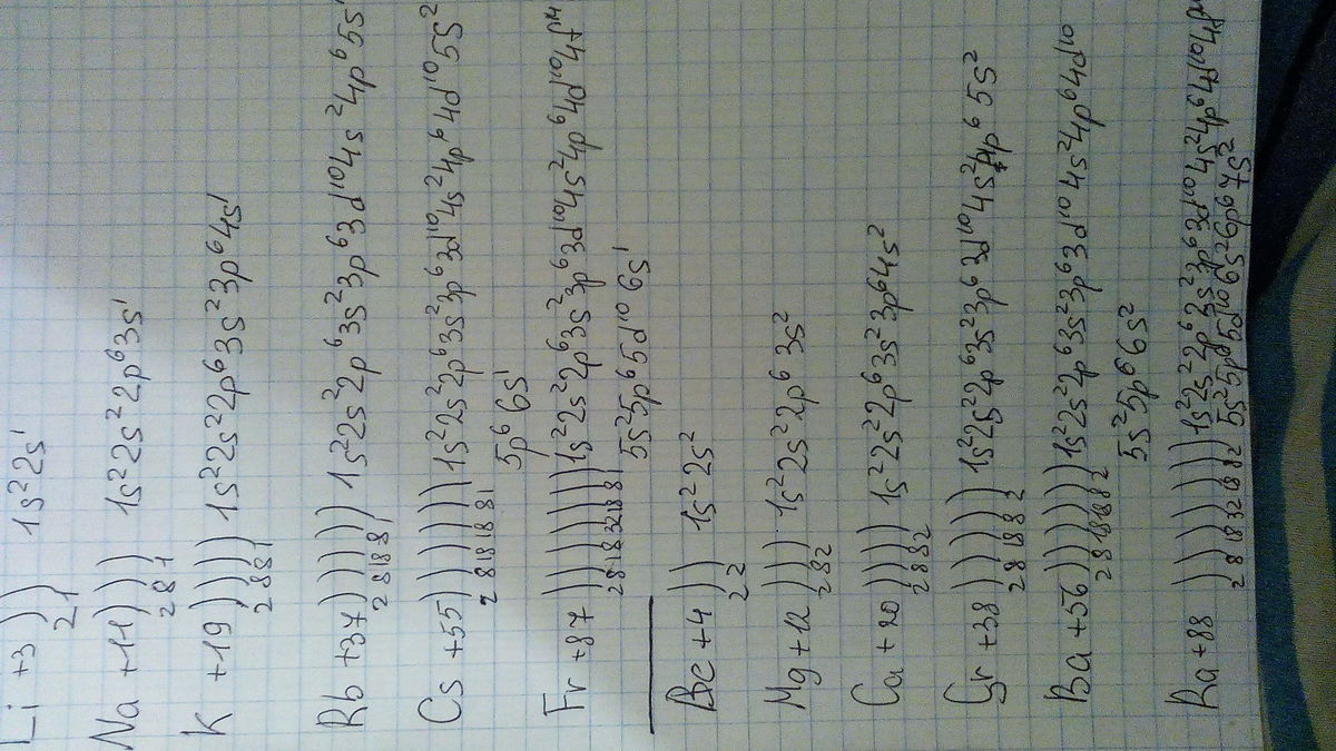 1группа-щелочные металлы,атомы на внешнем энергетическом уровне имеют по одному электрону, сильные восстановители. Их восстановительная способность и химическая активность возрастают с увеличением порядкового номера элемента , обладают электронной проводимостью. Прочность связи между атомами щелочных металлов уменьшается с увеличением порядкового номера элемента. Также снижаются их температуры плавления и кипения. взаимодействуют со многими простыми веществами — окислителями.