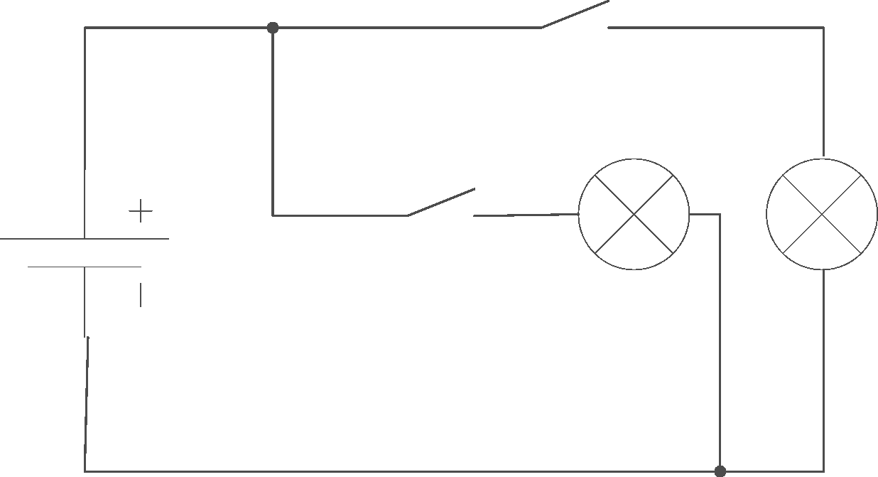 нарисуйте схему соединения батарейки, двух лампочек и двух ключей, при которой включение и выключение каждой лампочки производится "своим" ключом