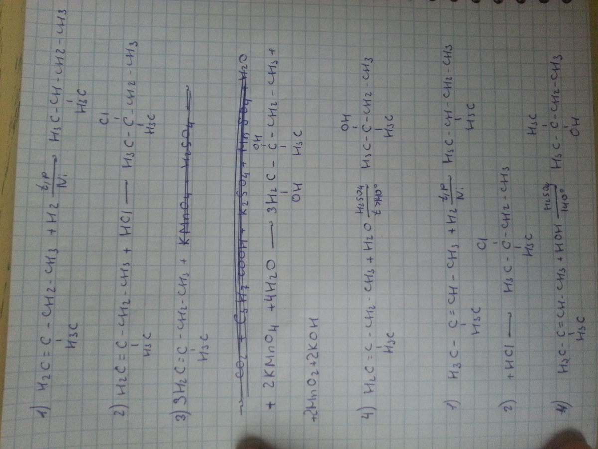 Напишите уравнение реакций гидрирования, гидрохлорирования, бромирования, окисления и гидратации:а)2-метилбутена-1;б)2-метилбутена-2 .Желательно структурные формулы. Заранее спасибо)