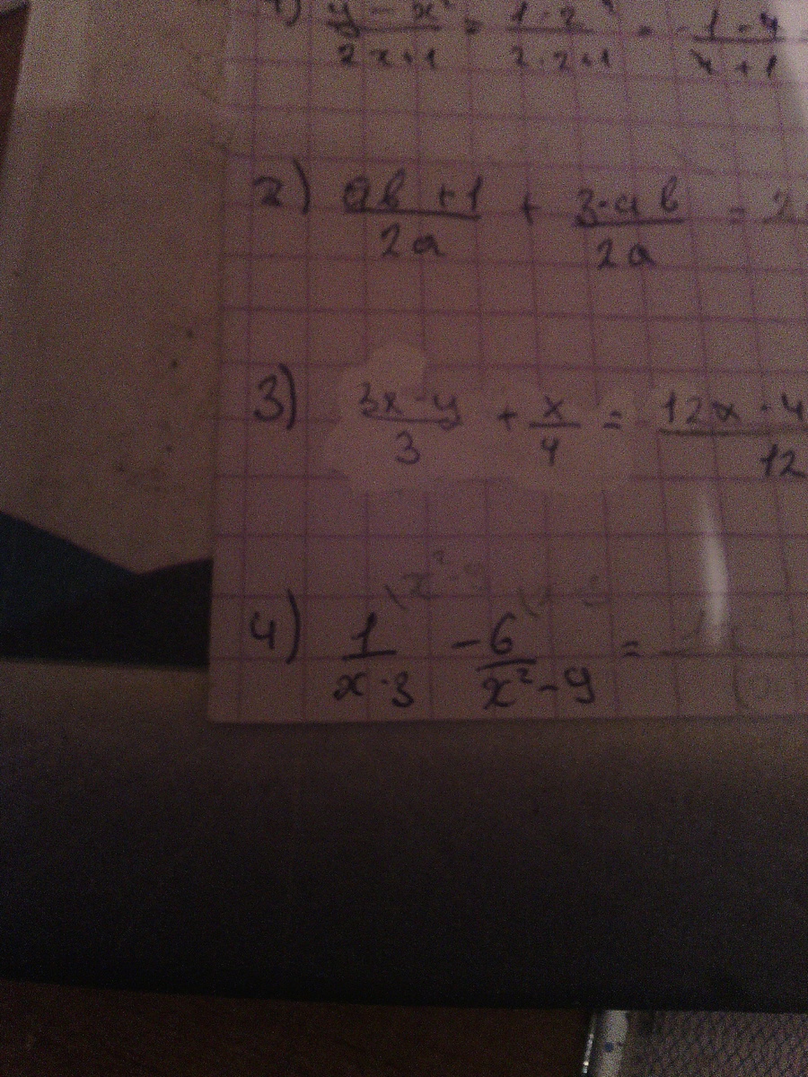 3) 3x-y/3 +x/4 = 12x-4y/12 + 3x/12 = 12x-4y+3x/12
