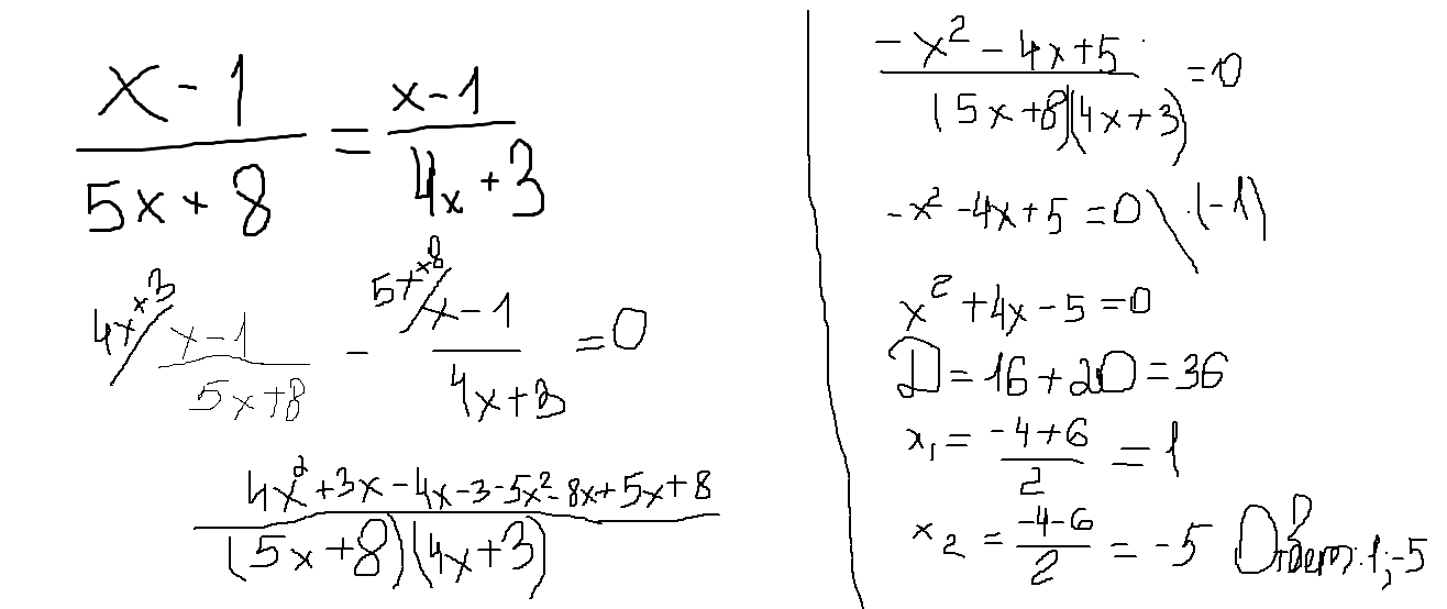 Пропорция : (х-1) * (4х+3) = (х-1) * (5х+8)