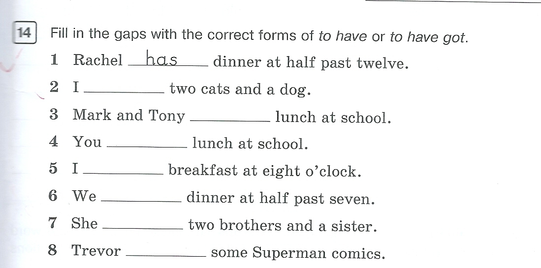 5) I HAVE breakfast at 8 o`closk in the morning.