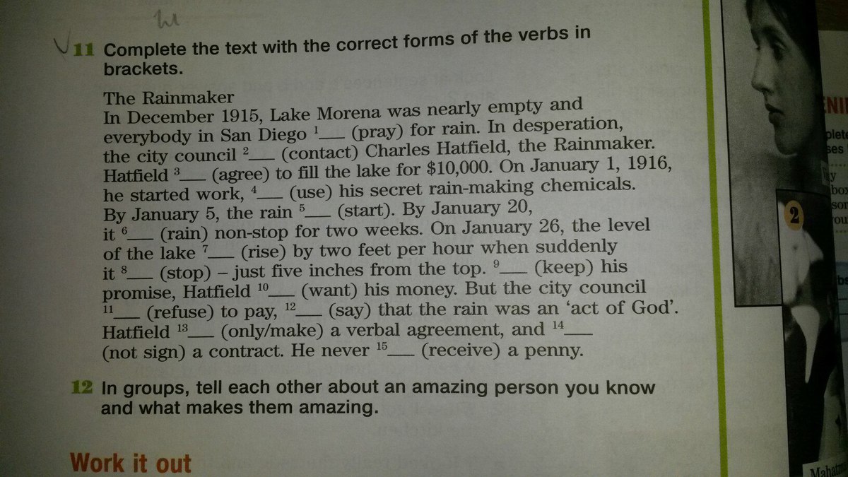 1 was praying 2 contacted 3 aggreed 4 using 5 had started 6 had been raining 7 fose 8 stopped 9 Having kept 10 wanted 11 redused 12 saying 13 had only made 14 had not signed 15 received
