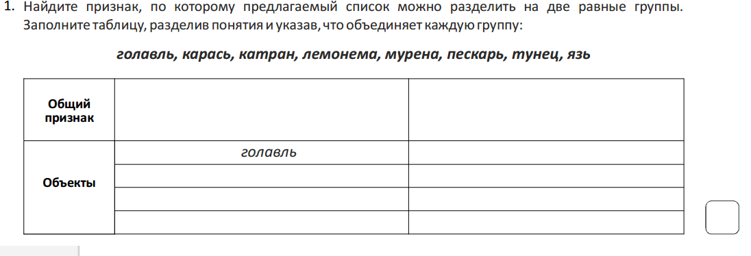 Заполните таблицу, разделив понятия и указав, что объединяет каждую группу