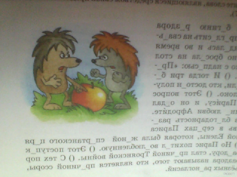 попробуйте объяснить смысл рисунка (Два ежика ругаются изза яблока, Яблоко раздора)