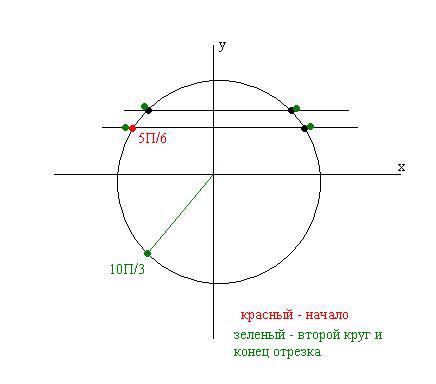 Отметим решения на единичной окружности и найдем их количество на заданном отрезке (см. рисунок).