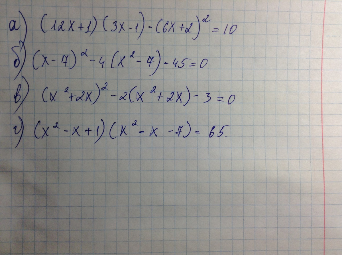 А) 36x(икс в квадрате)-12x+3x-1-36х(Икс в квадрате) - 16х + 4 = 10-12х+ 3х + 16х = -4 +1 +10 7х = 7х = 1