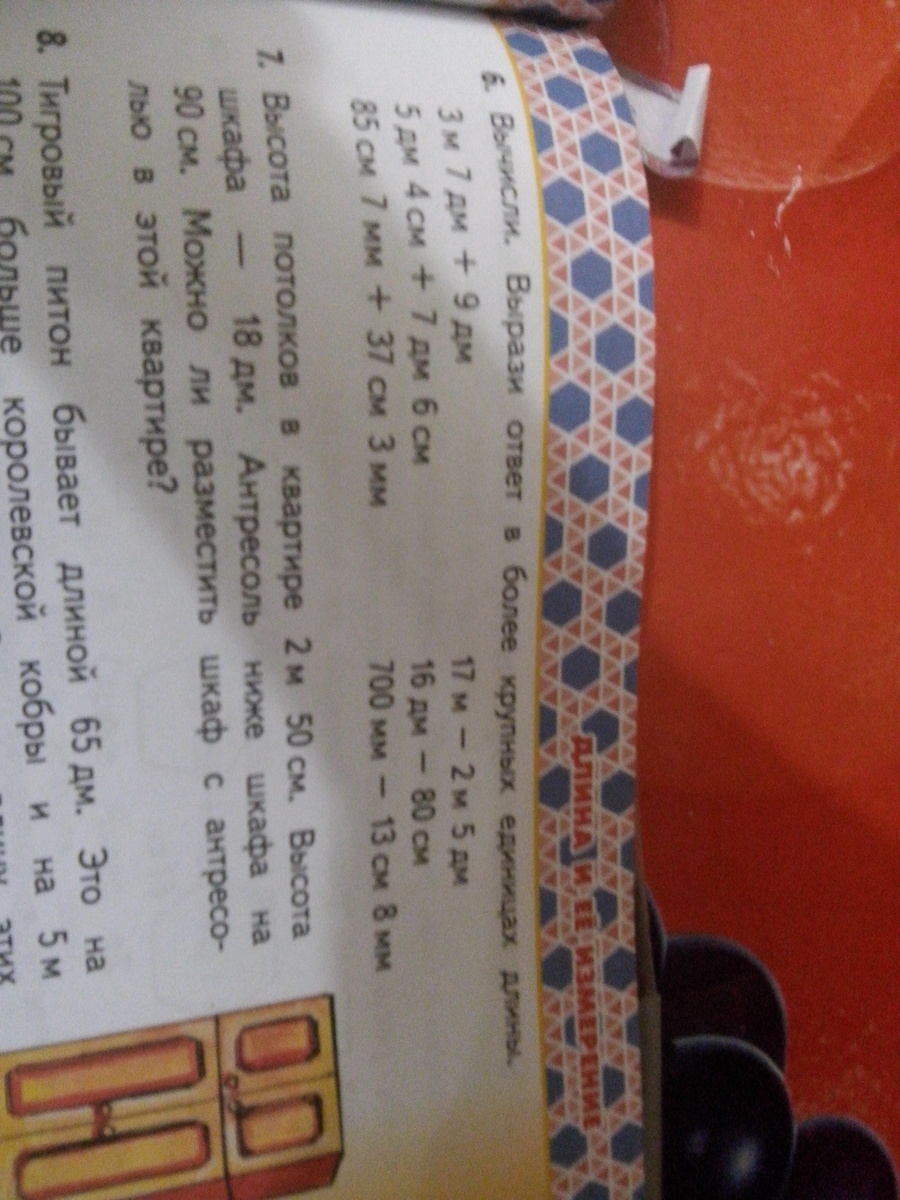 3 м 7 дм+9 м =3 м 16 дм= 4 м 6 дм;