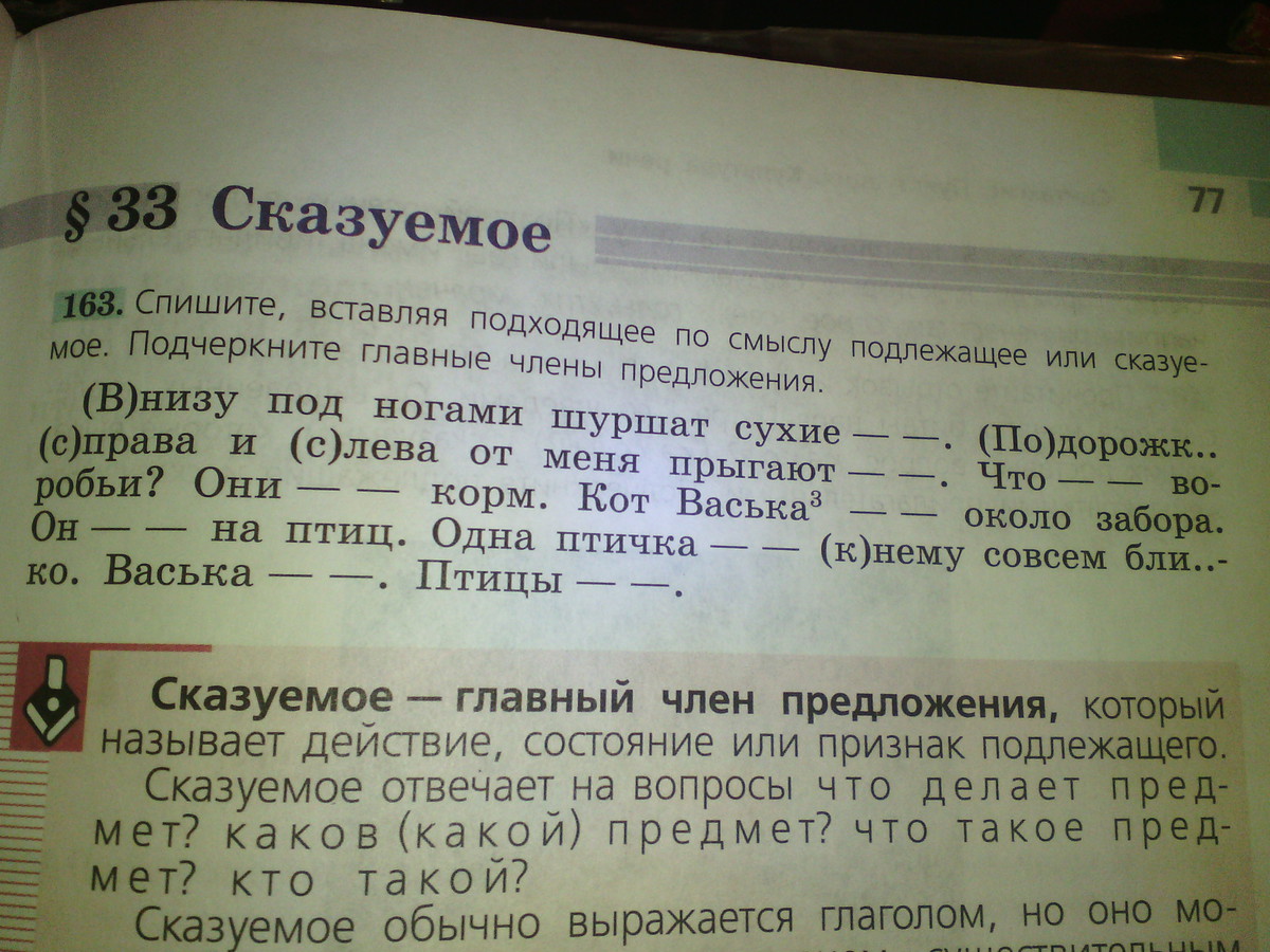 Внизу под ногами шуршат сухие листья. По дорожке справа и слева отменят прыгают воробьи. Что делают воробьи? Они клюют корм. кот Васька ходит около забора. Он охотится на птиц. Одна птичка подлетела к нему совсем близко. Васька вскочил. Птицы улетели.