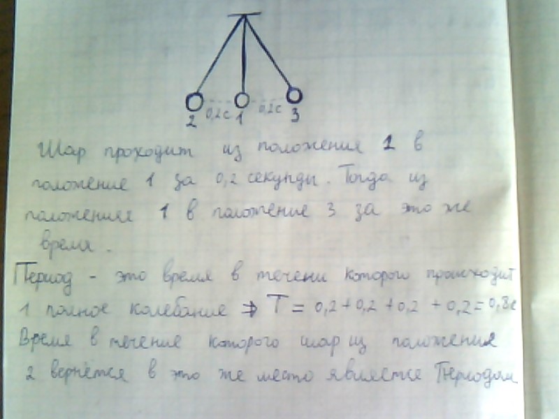 При свободных колебаниях шар на нити проходит путь от левого крайнего положения до положения равновесия за 0,2 с. Каков период колебаний шара?