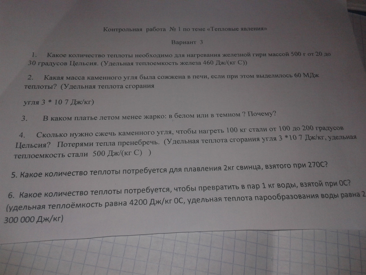 1)m=500 г=0,5 кг Q=c*m*(t2-t1)=460*0,5*(30-20)=2300 джt1=20t2=30c=460 Дж/(кг*с)Q-? Ответ: Q=2300 Дж