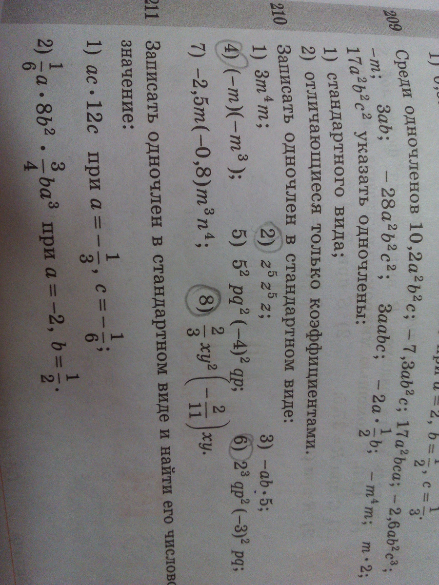 Как записать одночлен в стандартном виде?Объясните пожалуйста.....мне надо 2,4,6,8, номер 210