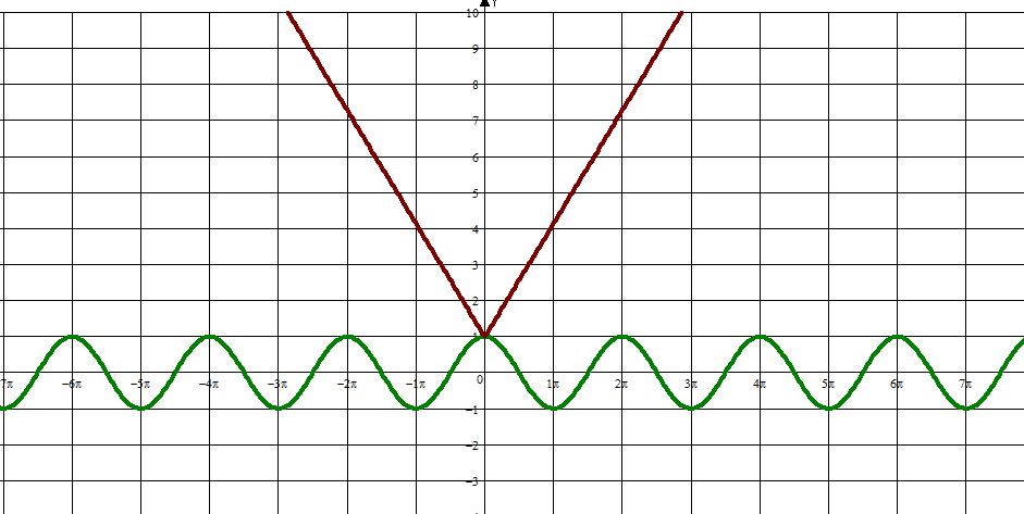 Область значений у =cos x [-1;1] , а у = 1+|x| [1; до бесконечности)