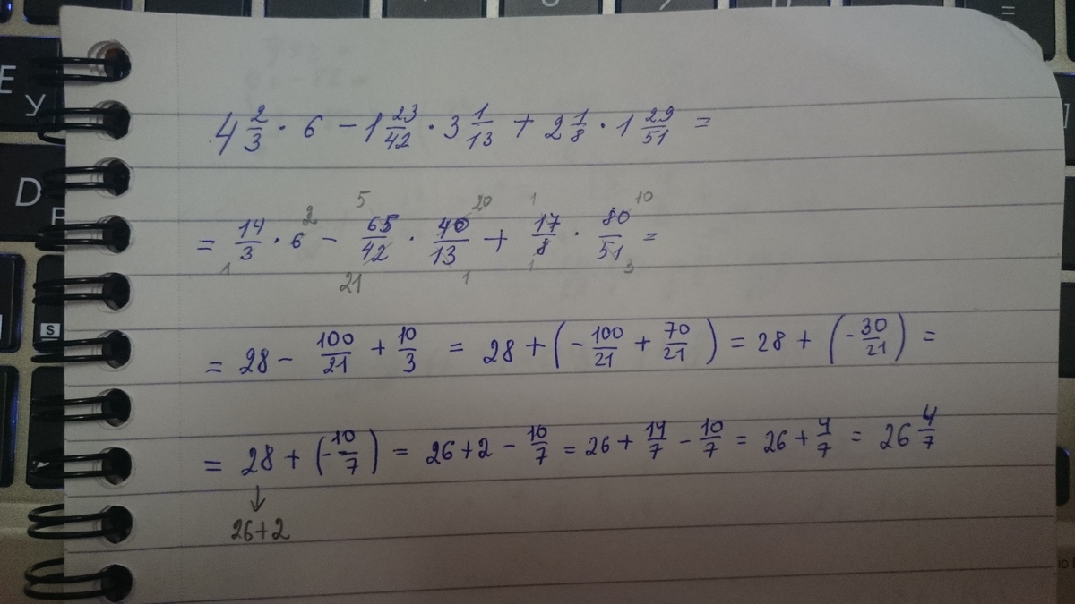 карандашом я показала, как сокращаются эти дроби. 28 можно разложить на 26+2, так проще будет вычитать дробь. надеюсь, все понятно. если что - спрашивай. Итоговый ответ 26
