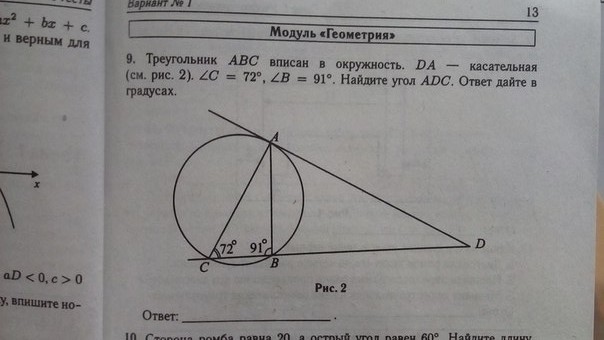 в треугольнике ABC: CAB = 180-72-91=17