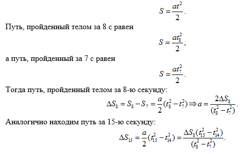 тело, если за 8-ю секунду после начала движения оно прошло путь S = 15 м? Найти путь за 15-ю секунду.