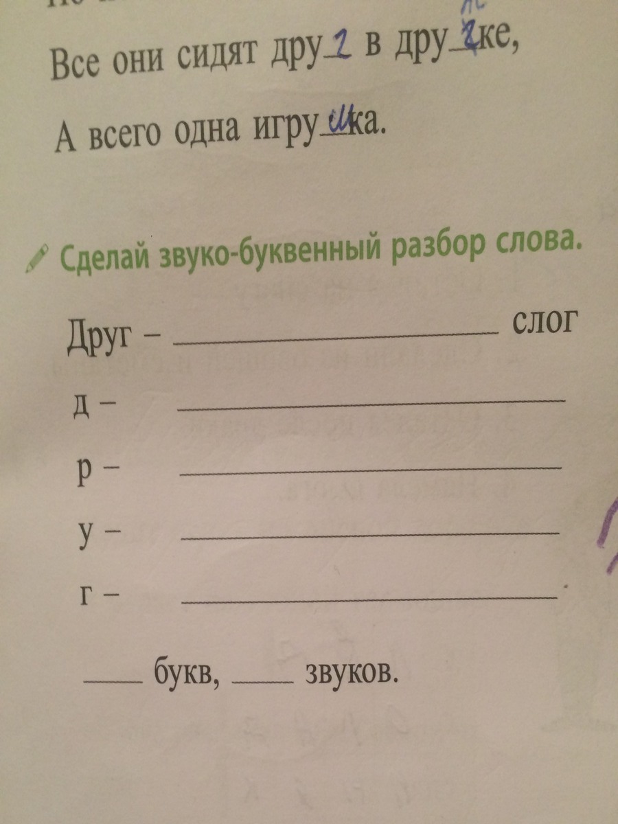 Один ударный слог. [д] - согл., звонк. парн., тверд. парн. [р] - согл., звонк. непарн., тверд. парн. [у] - гласн., ударн. [к] - согл., глух. парн., тверд. парн.