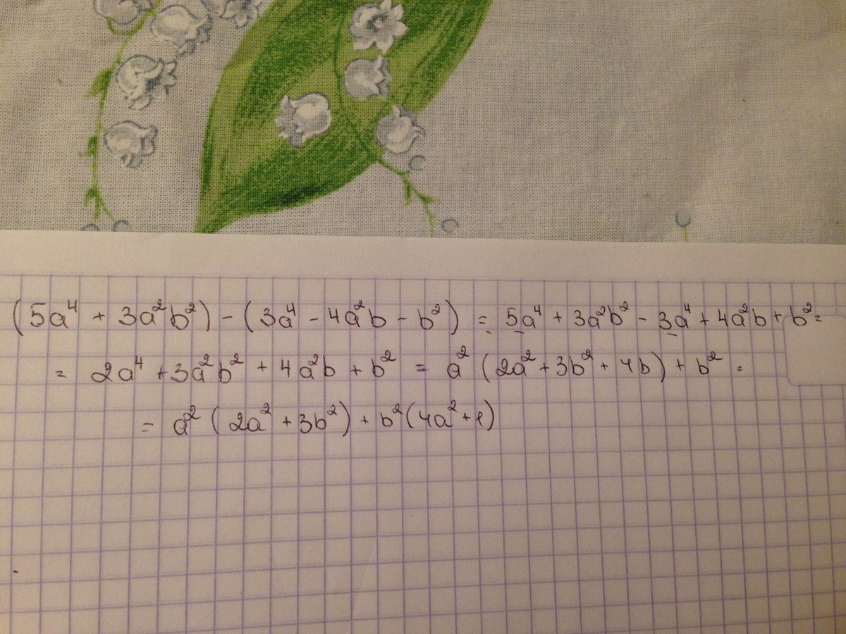 № 308 1) упростите выражение(5а в четвертой степени+3а во второй*b во воторой)-(3 а в четвертой-4а во второй*b-b во второй)
