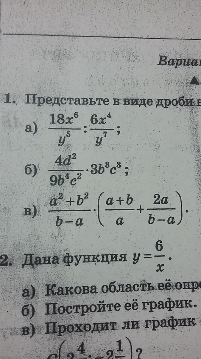 18Х6/у5:6х4у7=18х6/у5умножаем дробь на у7/6х4 сокращение = 3х2у2
