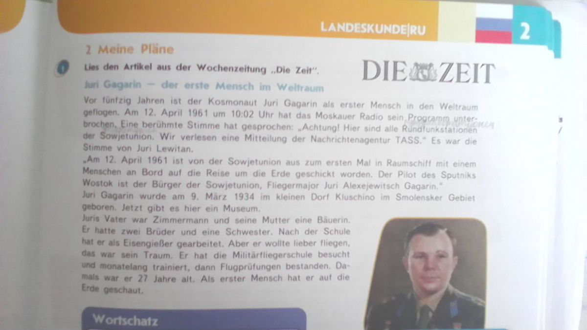 "12 апреля 1961 с Земли первый раз был послан советский космический корабль с человеком на борту. Пилот спутника "Восток" -- гражданин Советского Союза,майор авиации Юрий Алексеевич Гагарин."