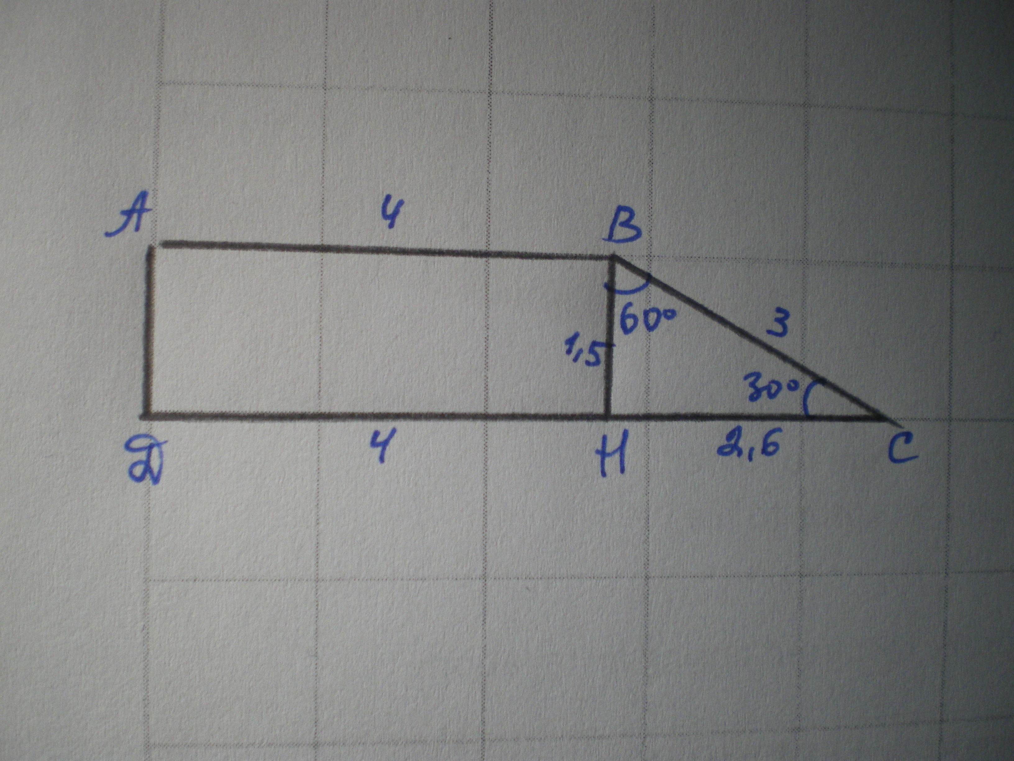 ДН=ВС=4; СД=4+2,6≈6,6 см