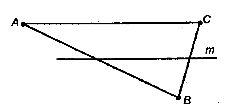 прямая m пересекает сторону AB треугольника ABC . Каково взаимное расположение прямых m и BC ,если : а) прямая m лежит в плоскости ABC и не имеет общих точек с отрезком AC ; б)прямая m не лежит в плоскости ABC
