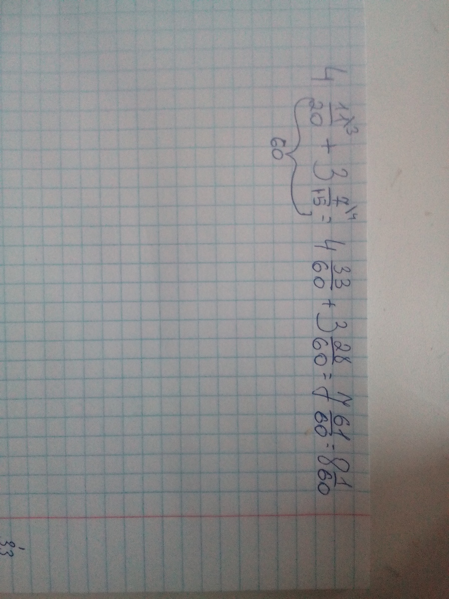 4 11/20 + 3 7/15= 4 33/60 + 3 28/60= 7 61/60=8 1/60