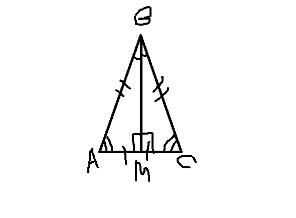 Так как треугольник равнобедренный, то углы при основании равны, а медиана в нем является и биссектрисой, и высотой.Значит, угол А=углу С; а угол АВМ=углу СВМ=40 градусам.
