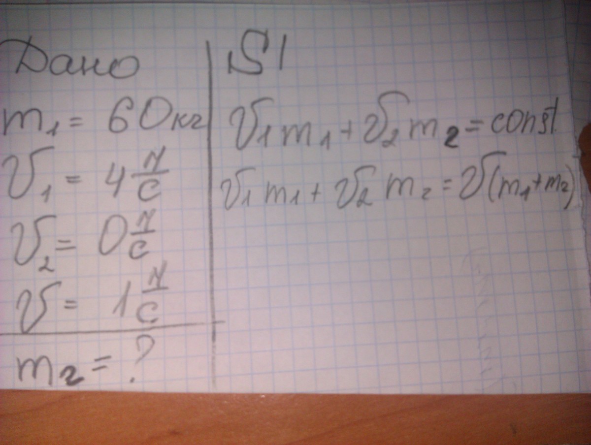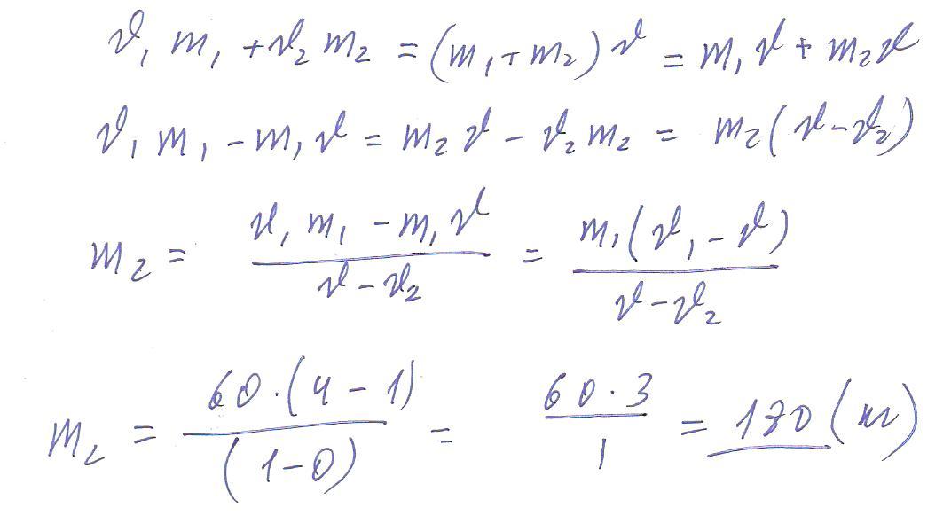 выражаем отсюда m2 = (U1m1-Um1)/U = (4*60-1*60)/1 = 180кг