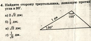 Найти сторону треугольника, лежащую против угла в 30 градусов.