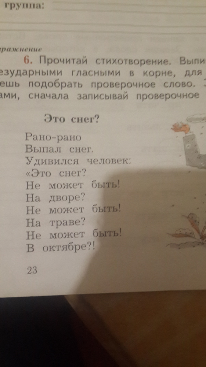 прочитай стихотворение . впишите пять слов с безударными гласных в корне.для которых ты можешь подобрать проверочное слово. запиши слова парами.сначало записывай проверочное слово.