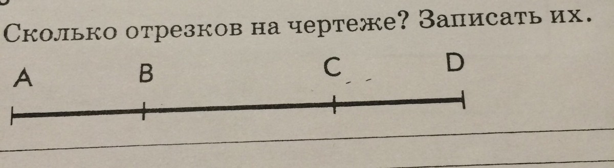 Всего 6 отрезков. AB,AC,AD,BC,BD,CD.
