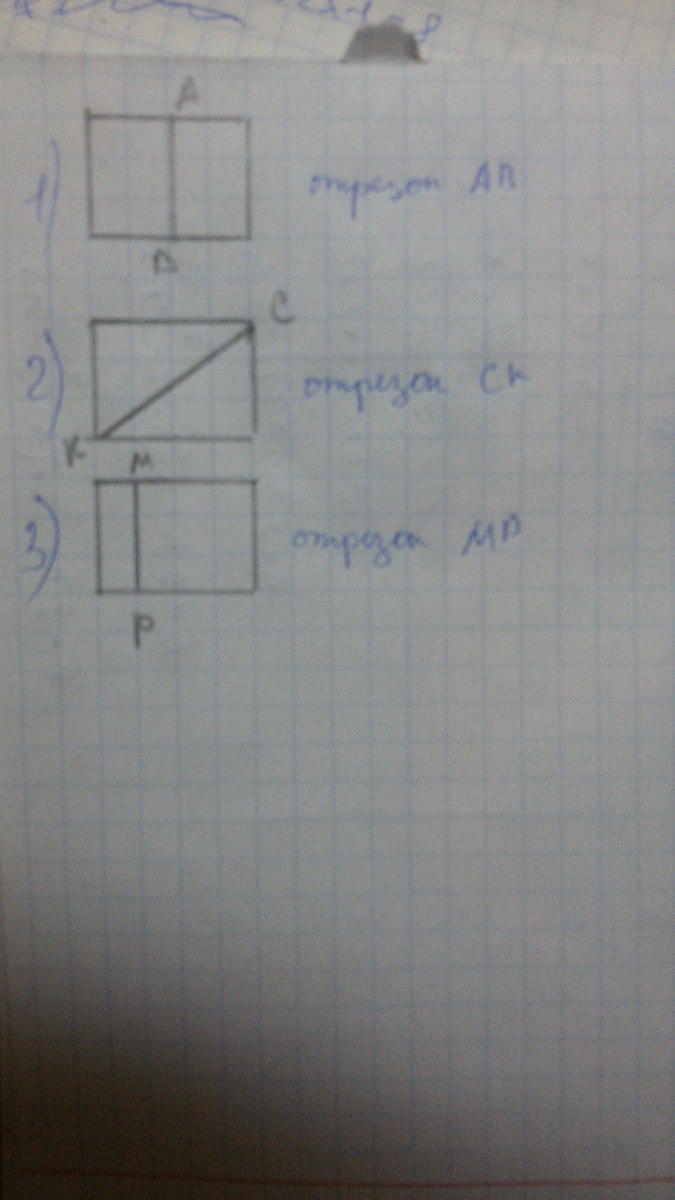 начерти в тетради 3 одинаковых прямоугольника длины сторон из которых 3 см и 4 см проведи в каждом из них один отрезок так чтобы он разделил 1 прямоугольник на 2 равных прямоугольника 2 на два равных треугольника а третий на прямоугольник и квадрат покажите рисунок