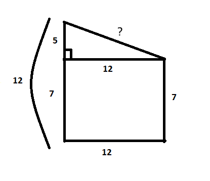 Два дерева высотой 12м и 7м находятся на расстоянии 12м друг от друга. Между их верхушками натянута веревка. Найдите ее длину в метрах
