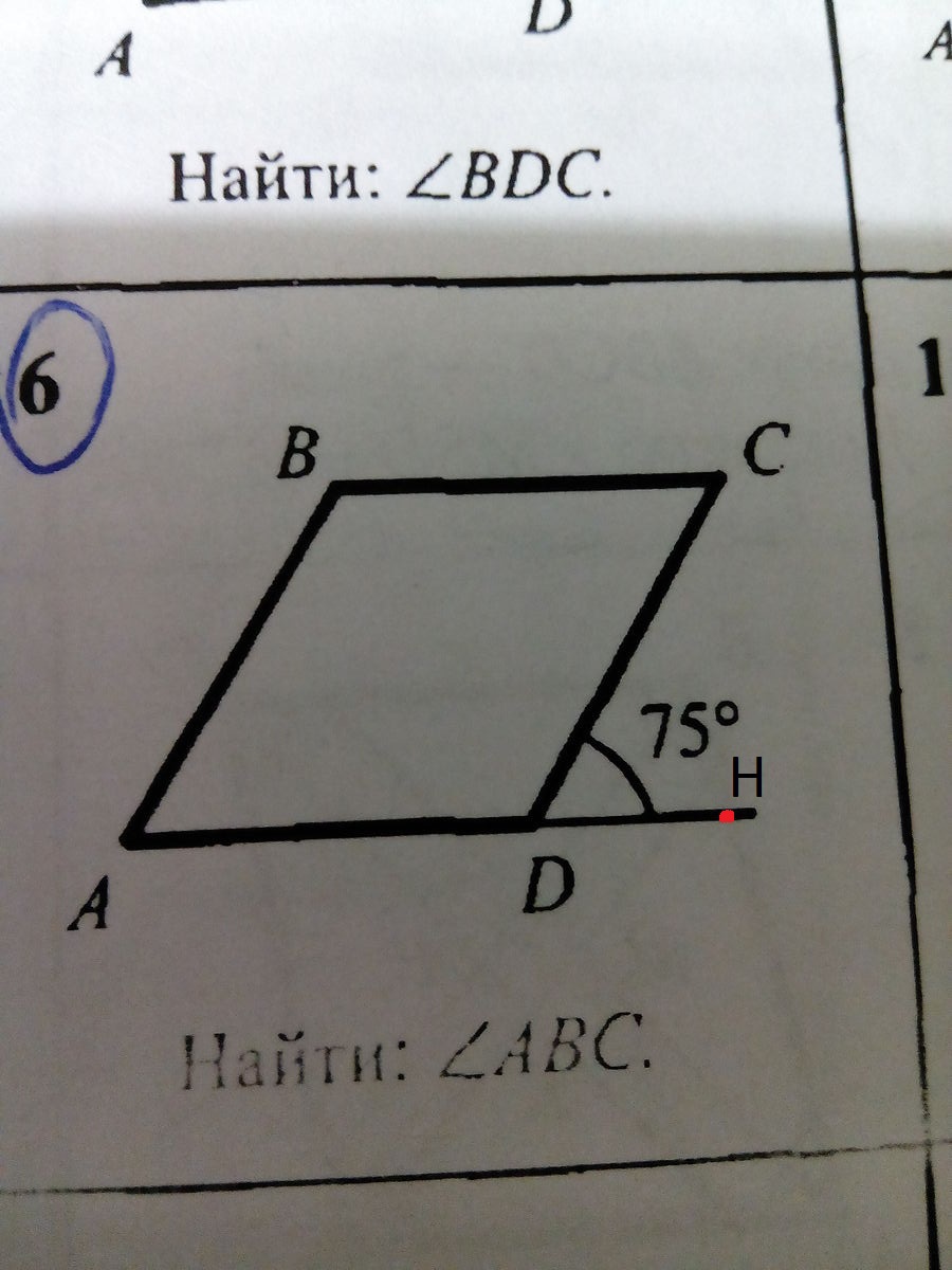 дано ABCD-параллелограм уголD-75градусов он ещё и внешний найти угол ABC очень енужно