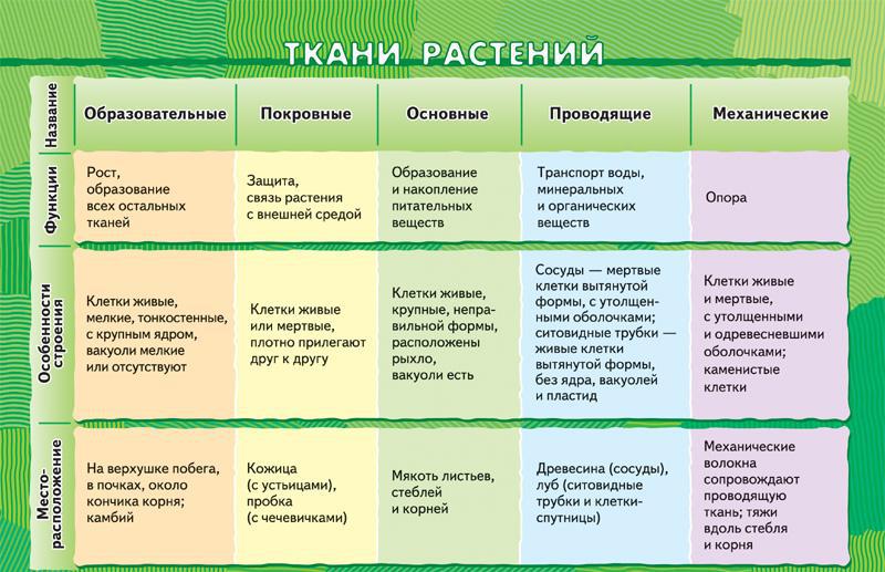 2. образовательные, проводящие, покровные, механические, основные (фотосинтезирующие, запасающие)