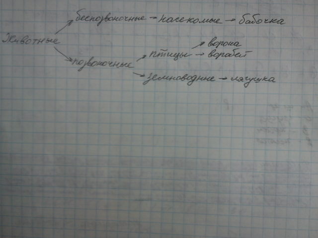 Помогите со словами : беспозвоночные, птицы, бабочка, воробей, лягушка, ворона, земноводные, животные, позвоночные , насекомые. Составить схему похожую на эту( см. Во вложениях)