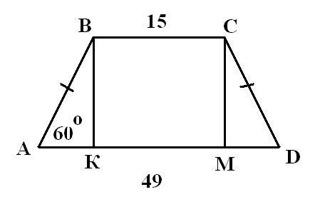Достроим высоты ВК и СМ, АК = DМ = (49 - 15) : 2 = 17