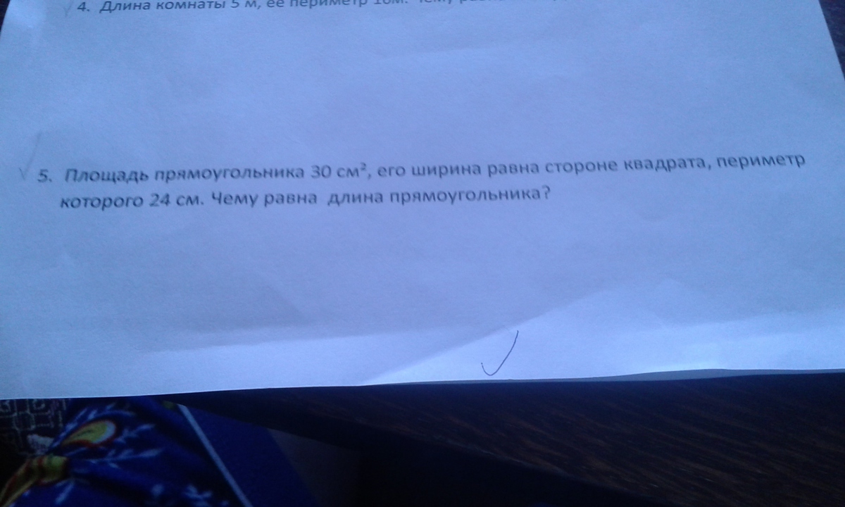 Длина равна 30см2 / 6см = 5 см (так как площадь прямоугольника равна произведению длины на ширину)