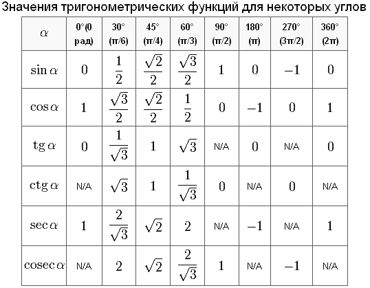 синусы: 30 градусов- 1/2; 45-корень из2/2; 60-корень из 3/2