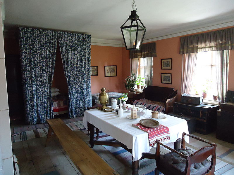 В Ленинградской области есть литературно-мемориальный музей, где воссоздали этот дом. Прикреплю 2 фотки оттуда, они помогут лучше представить дом. Первая - место работы, на второй жилая комната.