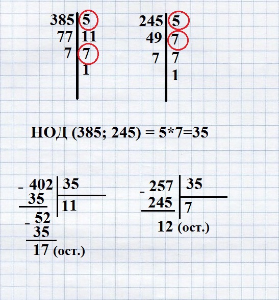 Теперь необходимо найти НОД (385; 245) (картинку прикрепила)