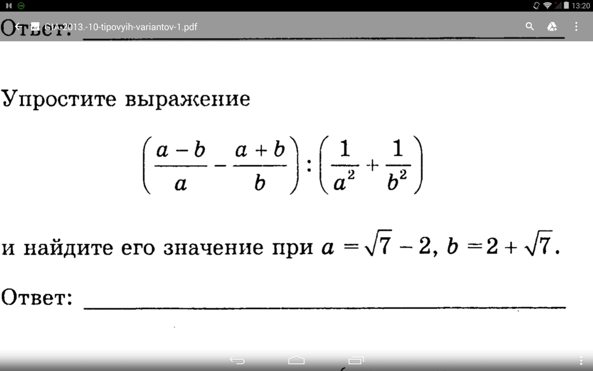 Найдите значение выражения (a-b/a-a+b/b):(1/a^+1/b^) и найдите его значение при а=√7-2,b=2+√7