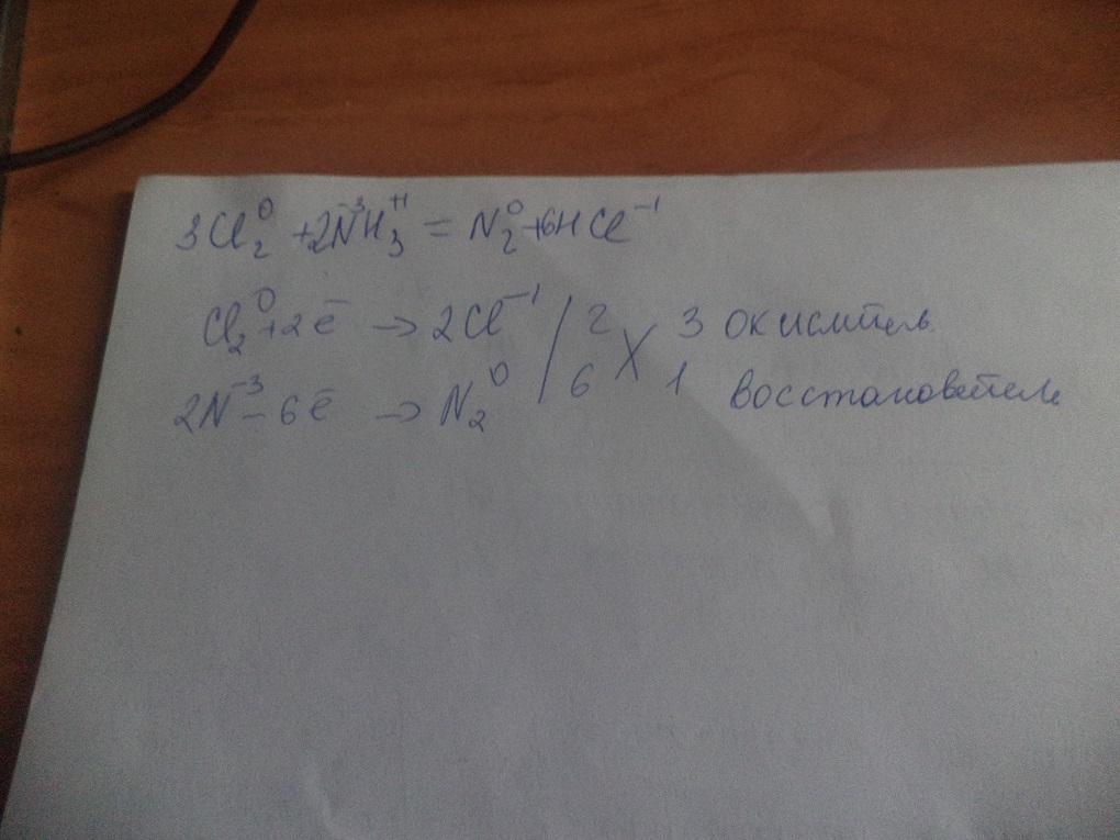 превратите схему реакции на химическое уравнение, укажите элемент окислитель и элемент восстановитель Cl2 + NH3 = N2 + HCl