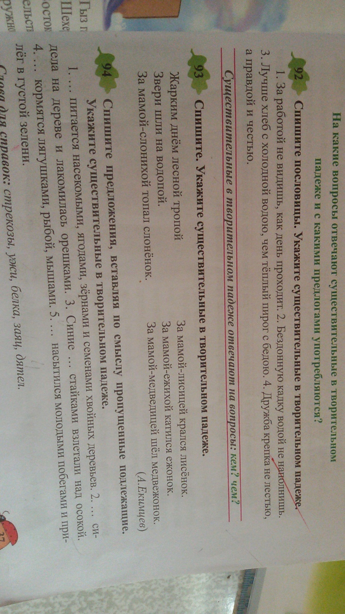 отвечают на вопрос чем? кем? жарким чем днем и так далее