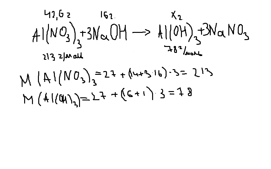 К раствору, в котором находится нитрат алюминия массой 42,6 г, прилили раствор, содержащий 16 г гидроксида натрия. рАССЧИТАЙТЕ МАССУ ОБРАЗОВАВШЕГОСЯ ОСАДКА ( ответ масса осадка равна 15.6г)